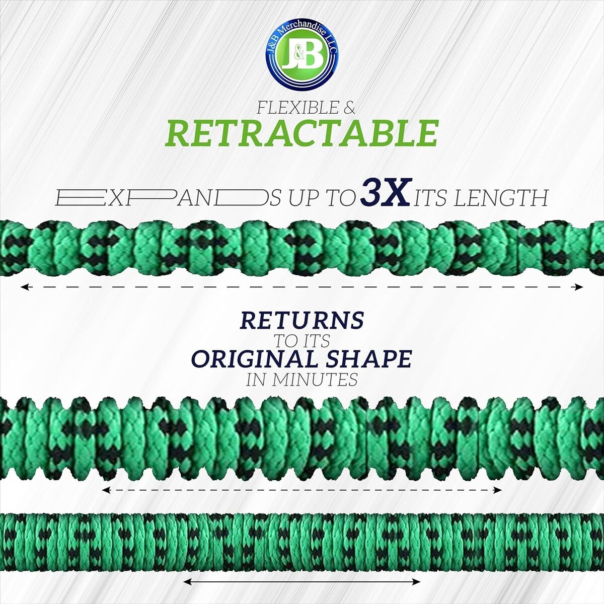 Expands up to 3 times its length under pressure and contracts for easy storage.