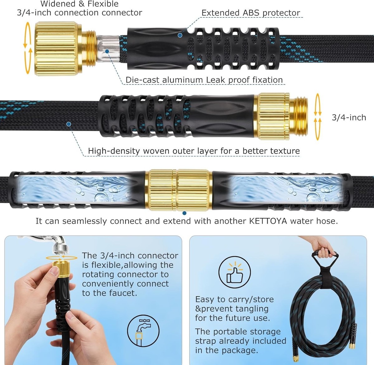 Features: Anti Kink,Kink Free,Flexible,Lightweight,Leak Proof,Durable,Portable,Anti-Kink Technology