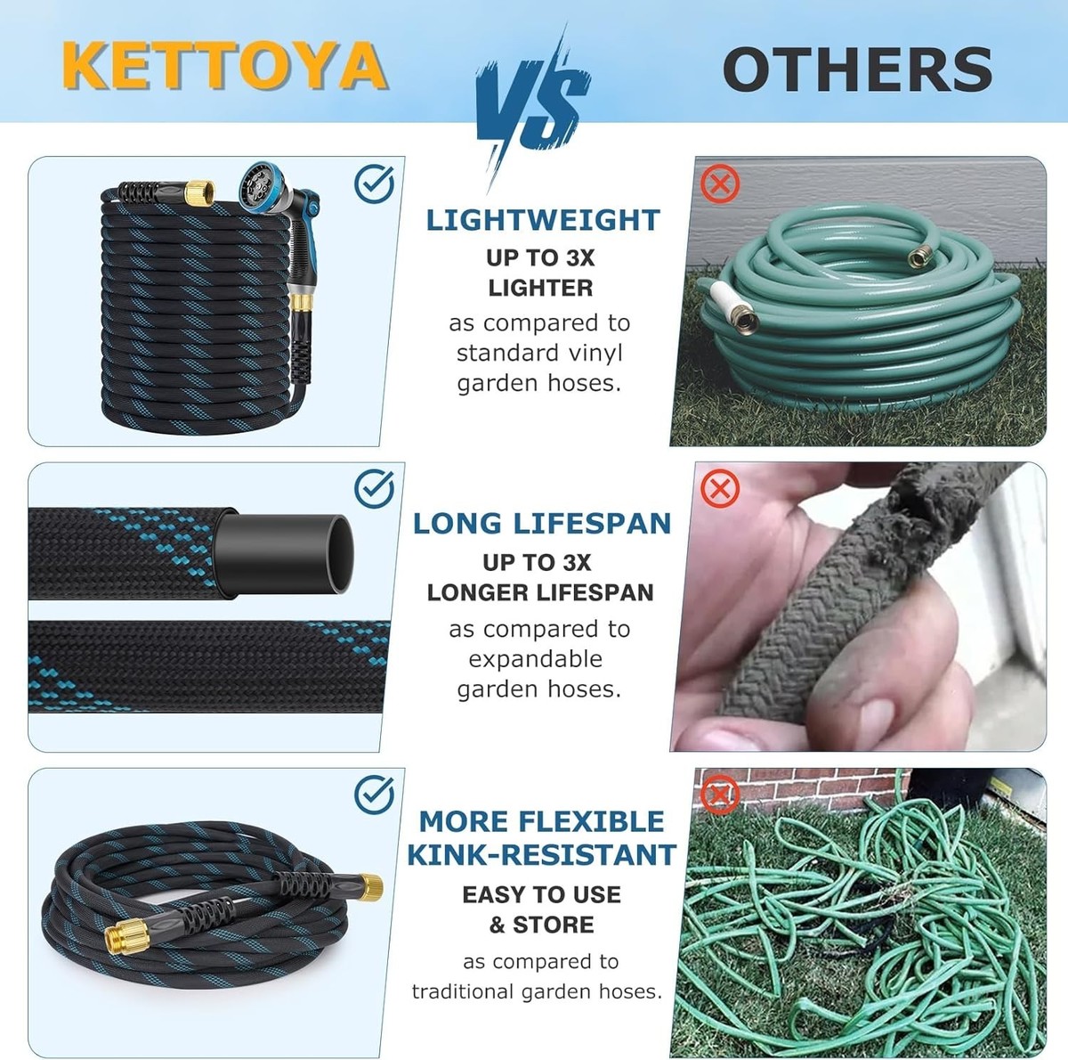 Non-Expandable Design: Lighter, more durable, and kink-resistant ? say goodbye to bulky hoses!