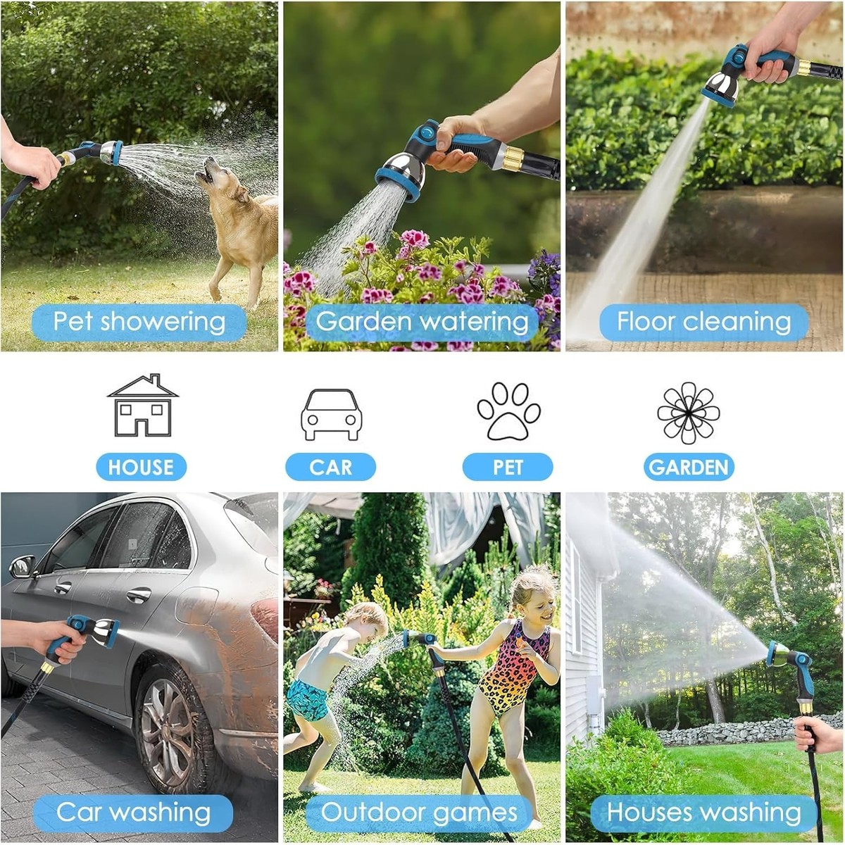 Upgraded 10-Function Spray Nozzle: Ergonomic thumb-controlled nozzle with 10 convenient spray modes for all your washing, gardening, and cleaning needs.
