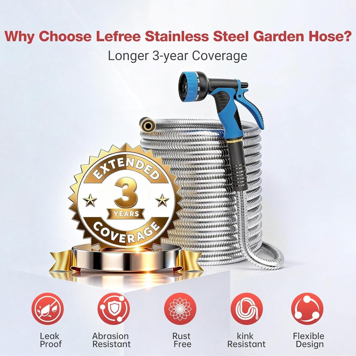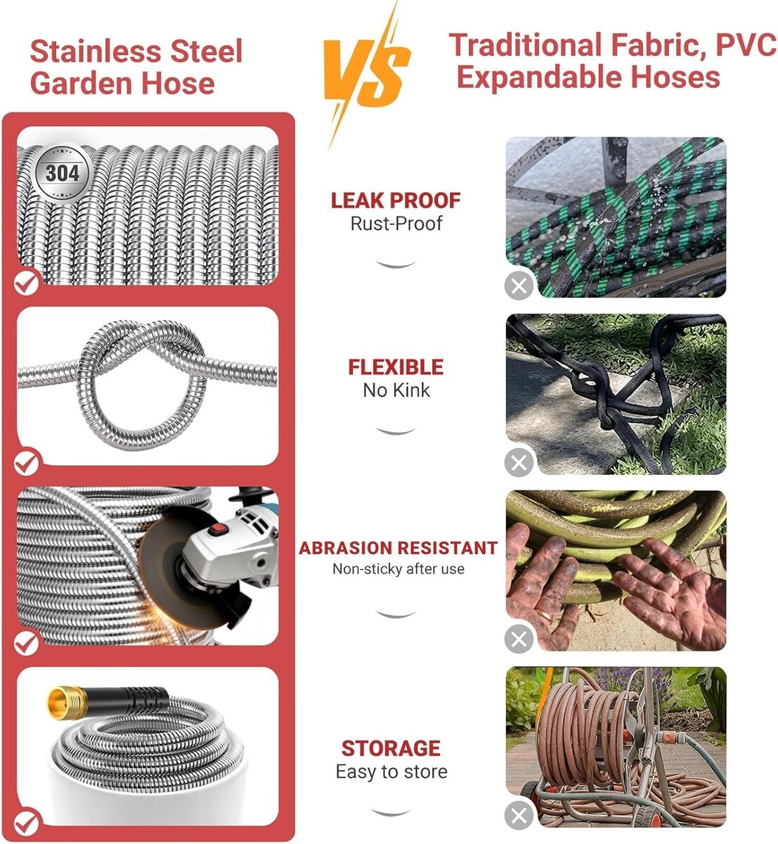 Heavy-Duty 304 Stainless Steel, Kink-Free Leak-Proof