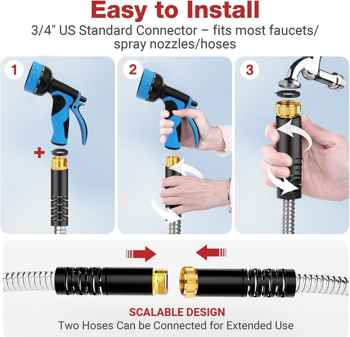 No More Leaks: Equipped with reliable brass connectors, upgraded rubber protection handle, and built-in leak-proof rubber rings, this hose guarantees a secure connection to your water source.
