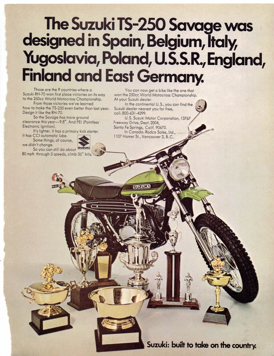 1971 Suzuki TS-250 Savage Print Ad and 28 similar items