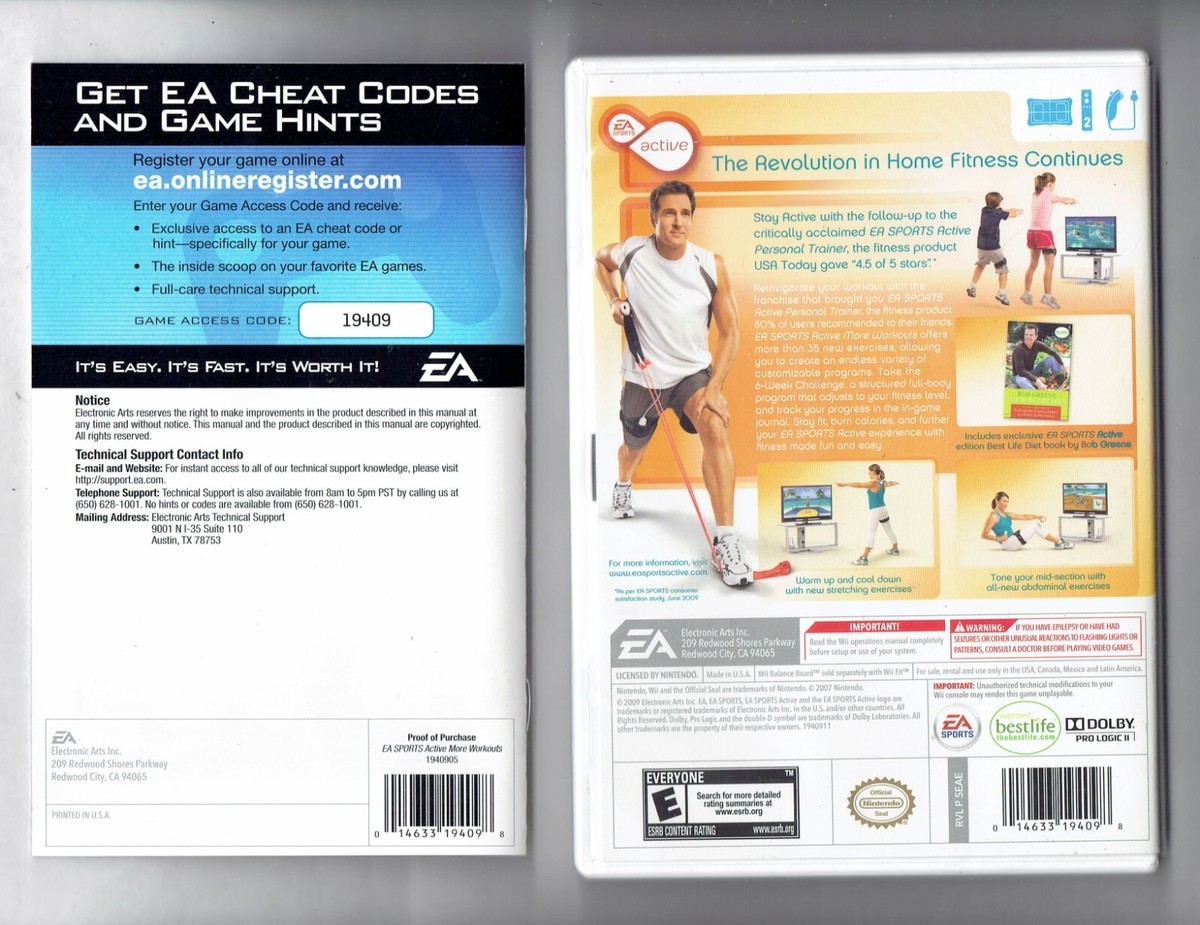 For Sale is a rare and hard to find Nintendo Wii EA Sports Active: More Workouts video Game Complete (disc Case and Manual). Its In good USED condition. Play Graded. Please ask Any and All Questions prior to purchasing. Fast Same or Next day shipping with Free Delivery Confirmation within the U.S. Payment Due within 7 days of purchase (if you need more time please let us know In advance) we love to combine shipping is always a Yes and Most of the time Additional Items Ship for free.
