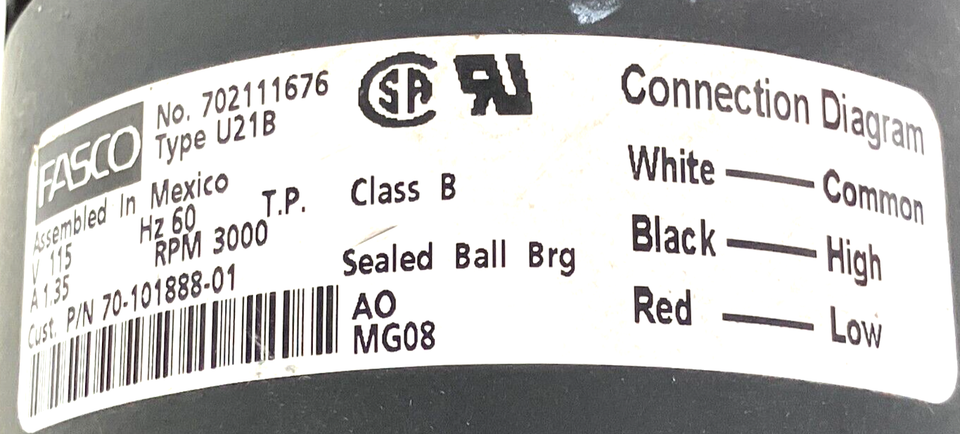 We have more than one motor for this listing so please do NOT expect to receive the one pictured, you will receive item 702111676 and Rheem 70-101888-01 in similar cosmetic condition.