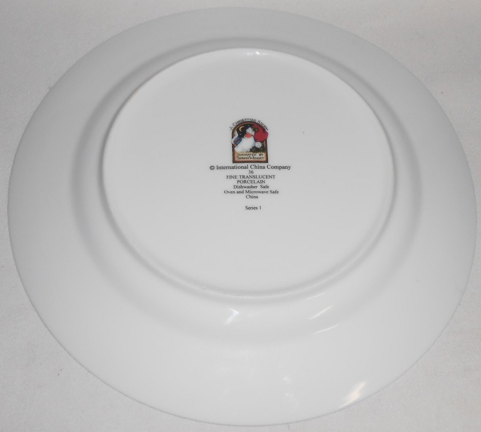 This is the 10 7/8" Porcelain Dinner Plate from International China in the Christmas Story Pattern. It has a colorful depiction of a cat in a chir next to the Christmas tree and the caption " Not a creature was stirring - not even a mouse". It is in good pre-owned condition with no chips or damage.