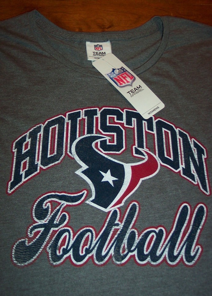 This is a VINTAGE STYLE WOMEN'S TEEN HOUSTON TEXANS NFL Football T-shirt. It is a size MEDIUM, and it is NEW with the tag. It is 17 1/2 inches from armpit to armpit and 25 inches in length. It is an official NFL TEAM APPAREL WOMEN'S Shirt. The print is made to look vintage. Winning bidder to add $5.00 shipping in the US(international will be more). Combine auctions to save on shipping.Winning bidder to e-mail within 3-days if not paying right away, and payment to be received within 10-days. D4AF