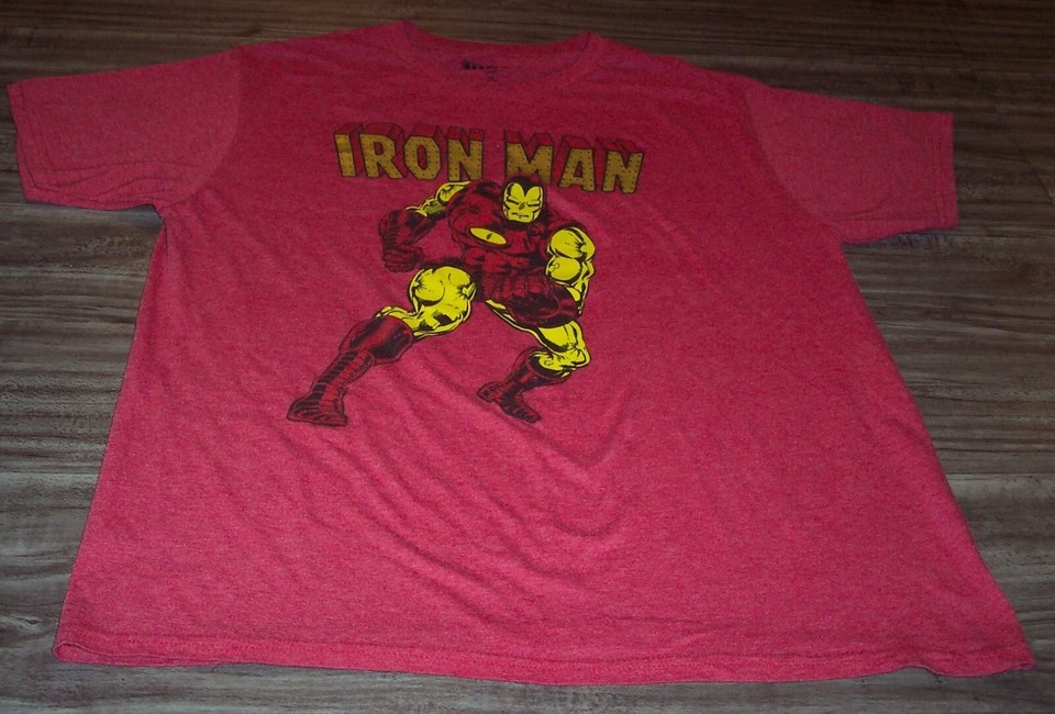 This is a IRON MAN Marvel Comics T-shirt. It is a size XL. It is 23 inches from armpit to armpit and 29 inches in length. A little shorter then a typical XL, but may fit you perfect depending on your height. The Gold print is a foil print and looks awesome! It is in great condition. It is CLEAN! No Stains tears or Defects. Combine auctions to save on shipping. AD