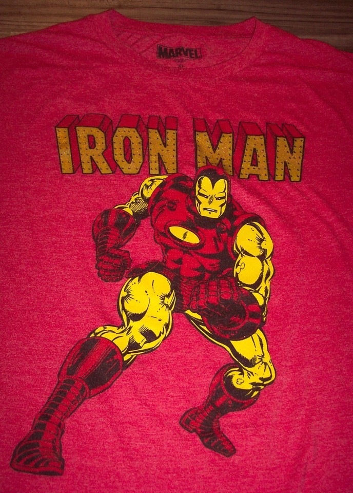 IRON MAN Marvel Comics T-Shirt The Avengers MENS XL GOLD FOIL PRINT!!