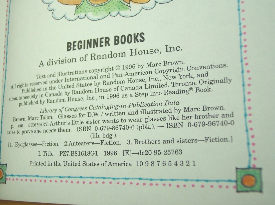 Vintage 1996 Marc Brown ARTHUR GLASSES FOR DW Hardcover Book Beginner Books NEW