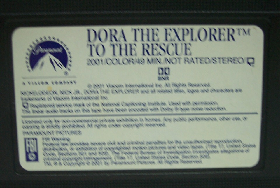 This is Vintage Nick Jr. DORA THE EXPLORER To The Rescue Cartoon VHS VIDEO from 2001. It has a run-time of 49 Minutes. EAG