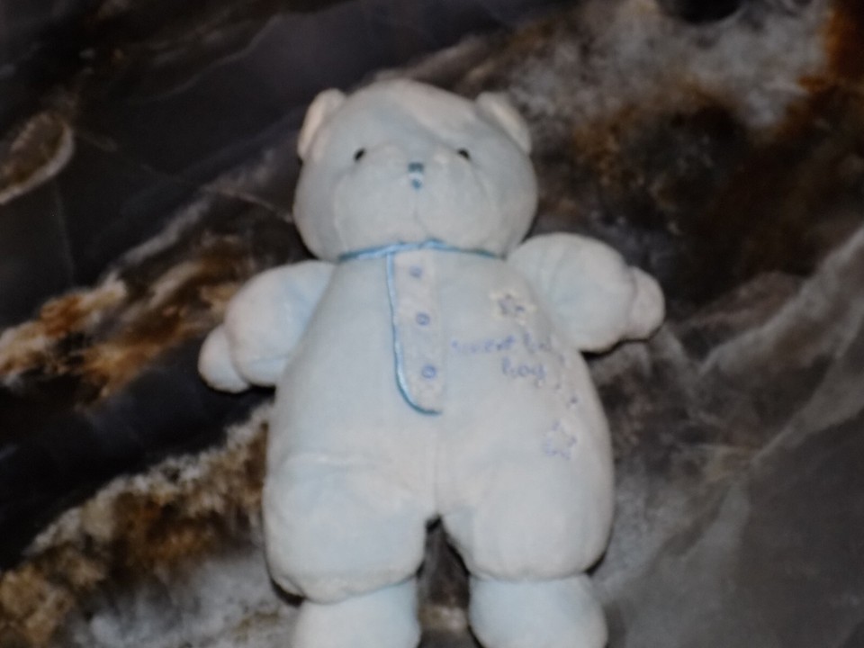 Carters Just One Year Blue Sweet Baby Boy Plush Teddy Bear Rattle
