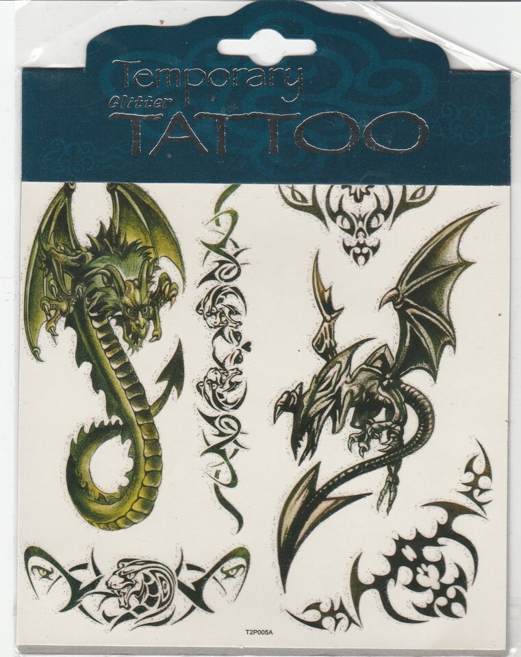 Flying Dragons Temporary Glitter Tattoos 6" x 6" Sheet