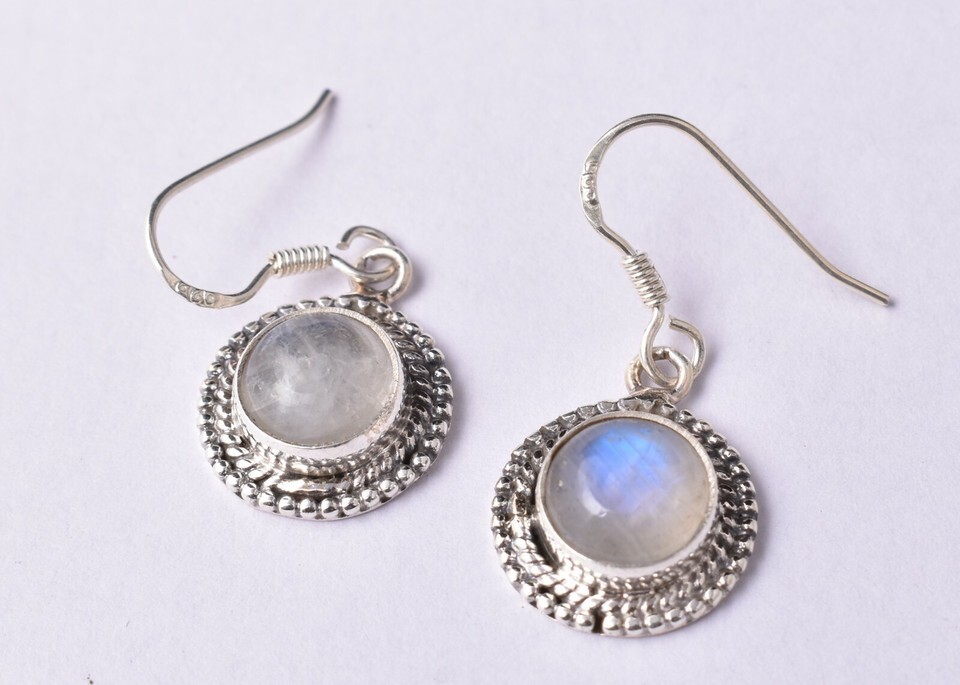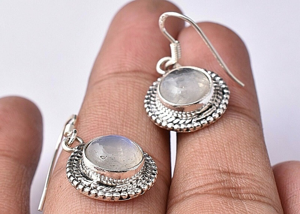 Sterling Silver Moonstone Gemstone Hand Crafted Women Earrings Gift For Sister