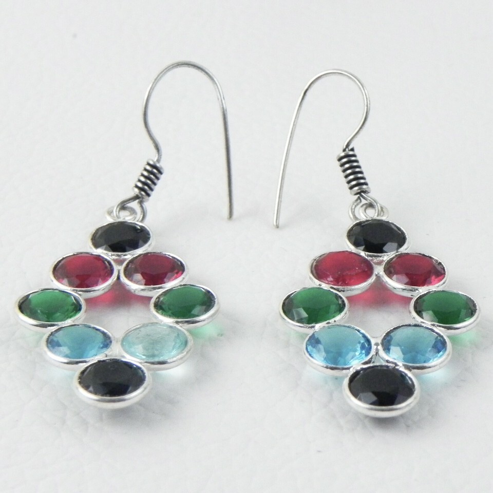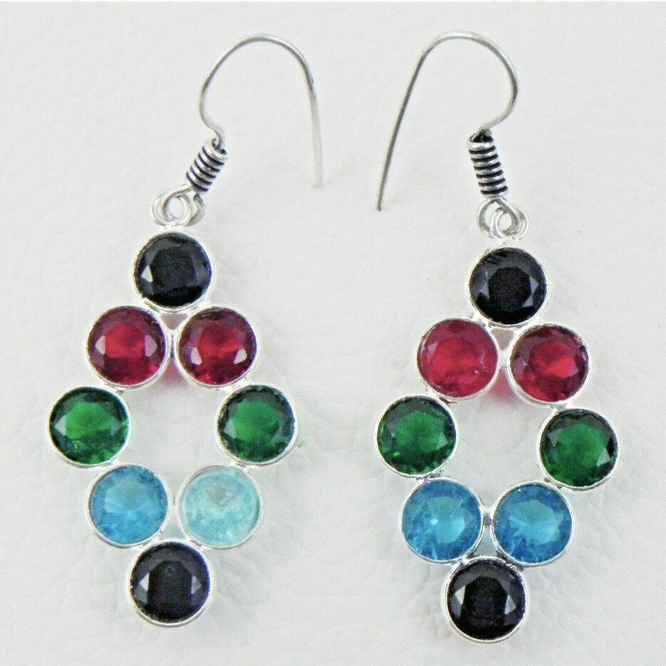 925 Sterling Silver Multi Gemstone Handmade Dangle Earrings Her Gift ES-1255
