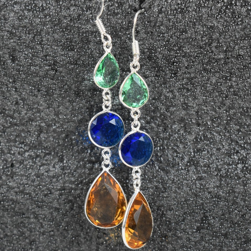 925 Sterling Silver Citrine & Topaz Gemstone Handmade Earrings Gift BES-1454