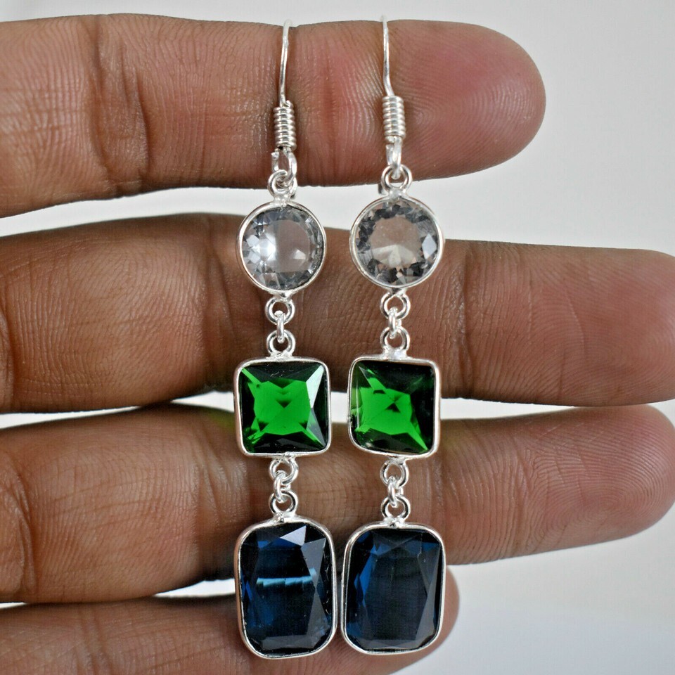 Sterling Silver Topaz & Quartz Stone Handmade Dangle Fantastic Lovely Earring