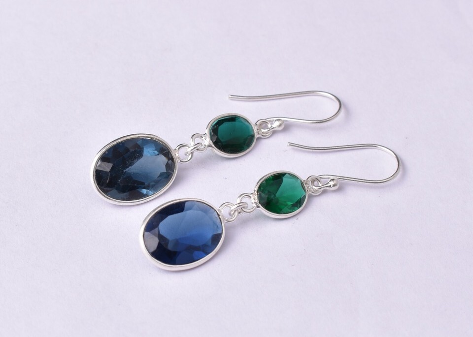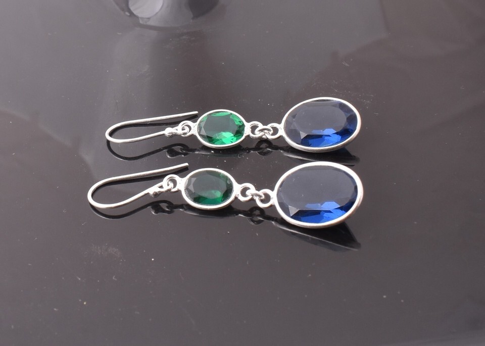 925 Sterling Silver Emerald Gemstone Handmade Earrings Valentine's Day Gift ES