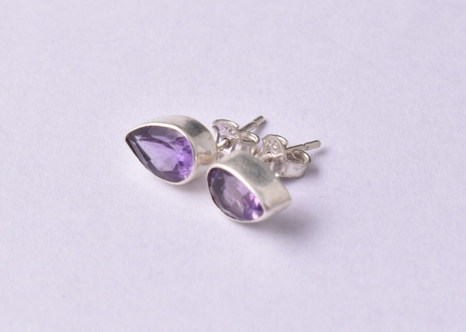 925 Sterling Silver Amethyst Gemstone Handmade Dangle Earrings Her Gift ES-1118