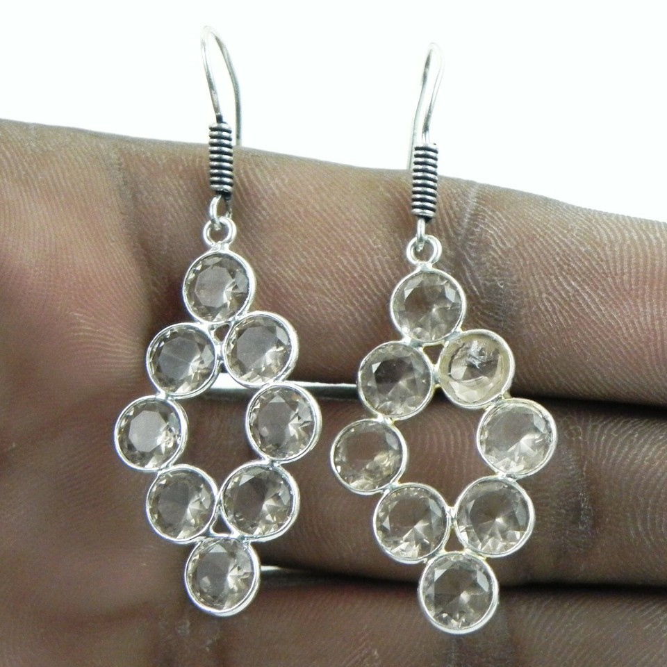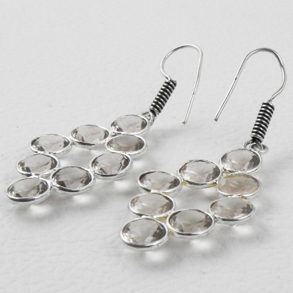 925 Sterling Silver Morganite Gemstone Handmade Dangle Earrings Her Gift ES-1251