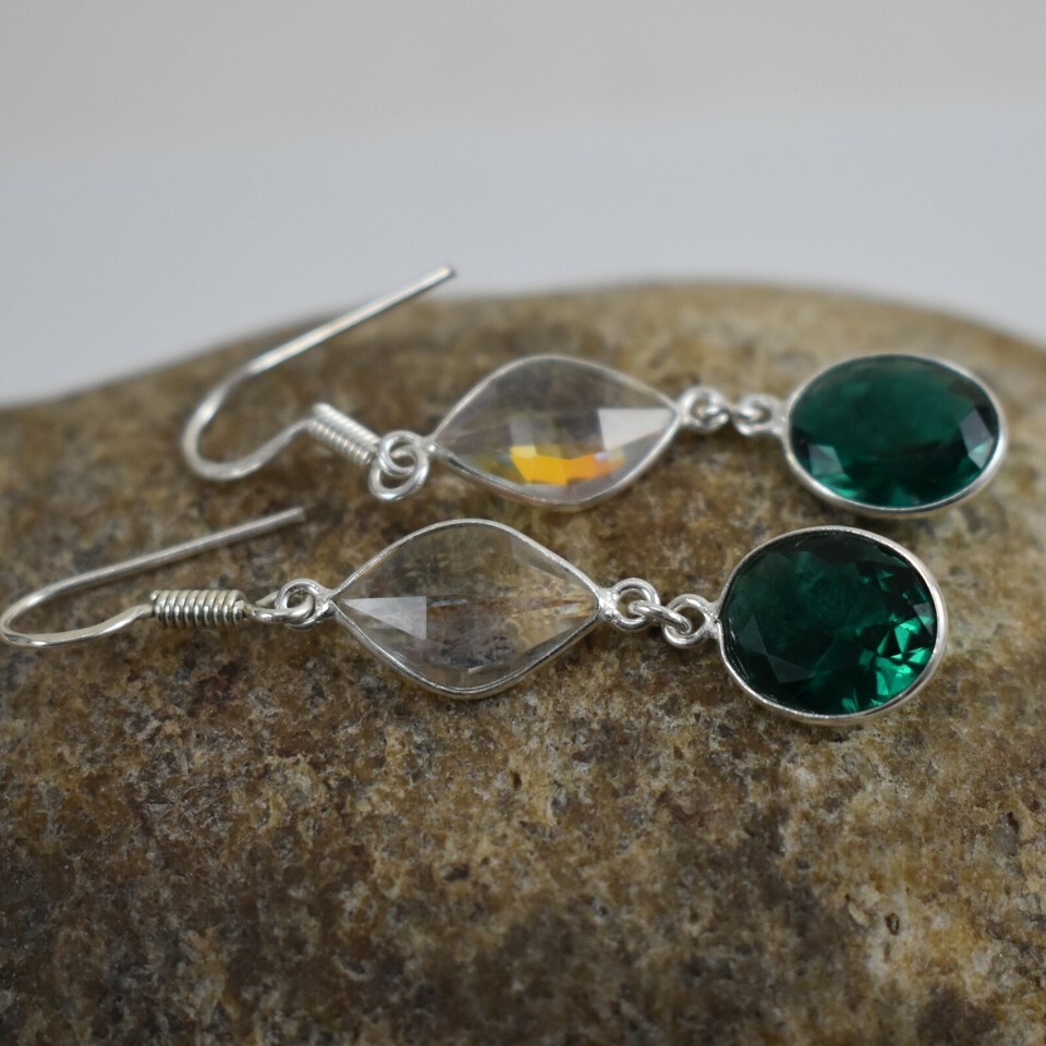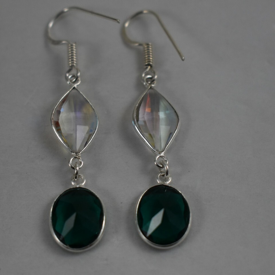 925 Sterling Silver Green Quartz Gemstone Handmade Earrings Women Gift BES-1384