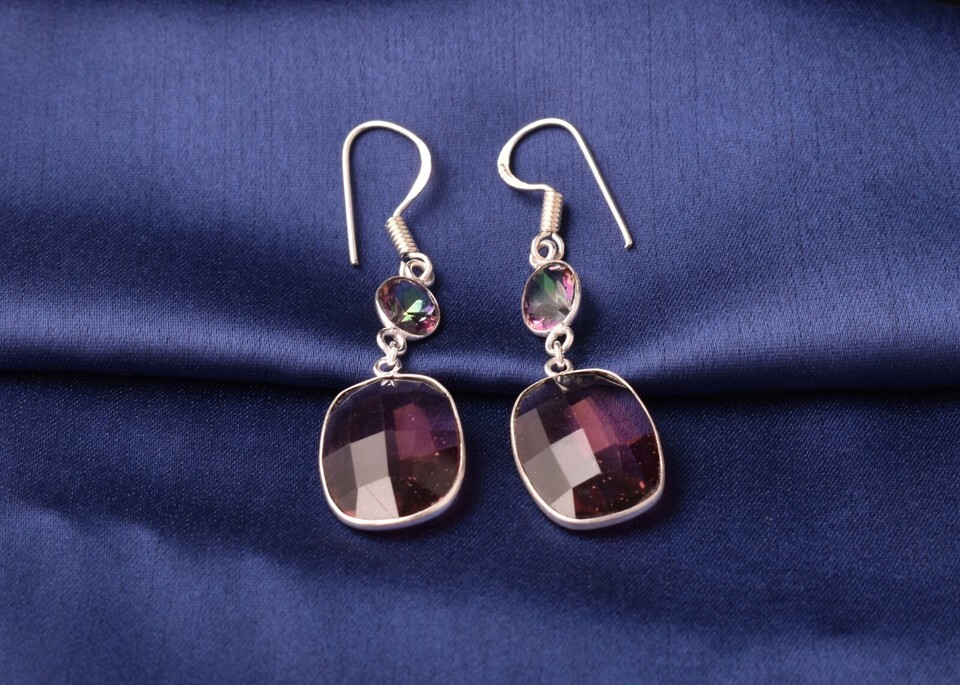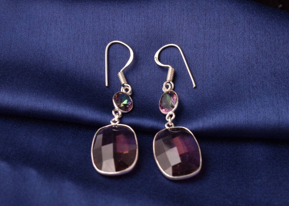 925 Sterling Silver Amethyst & Created Mystic Quartz Handmade Earrings ES-1065