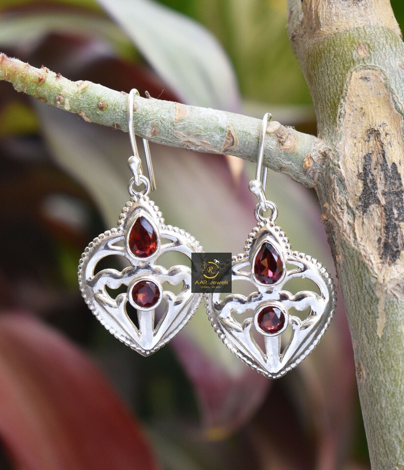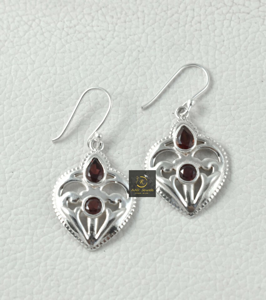 925 Sterling Silver Ruby Quartz Gems Handmade Earring Her Party Wear Gift ES1286