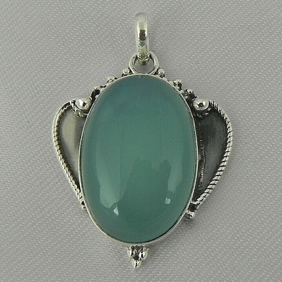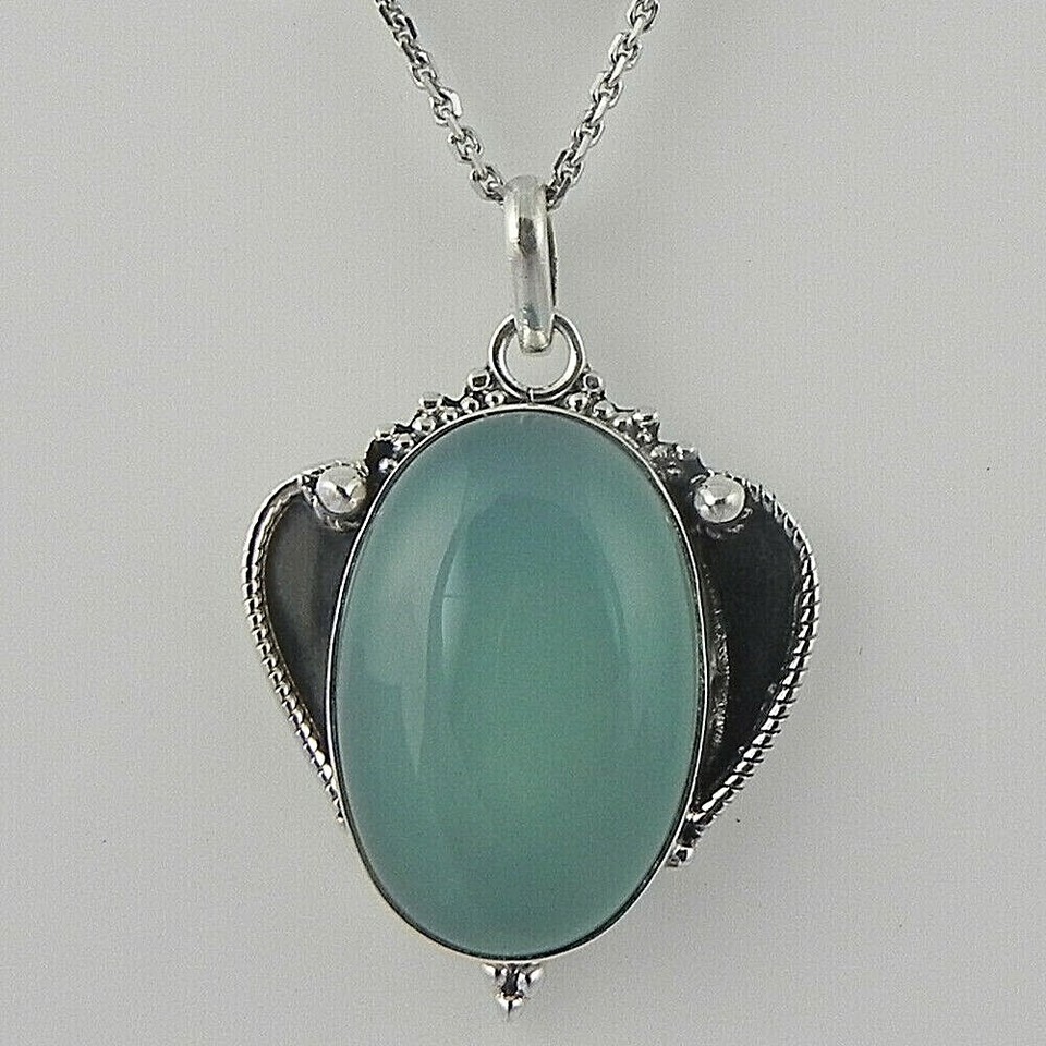 925 Sterling Silver Pendant Necklace Chalcedony Handmade Fine Jewelry PS-1928