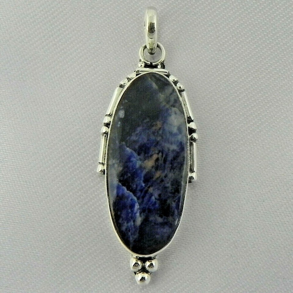 925 Sterling Silver Sodalite Gemstone Handmade Pendant Women Fest Gift PS-1924