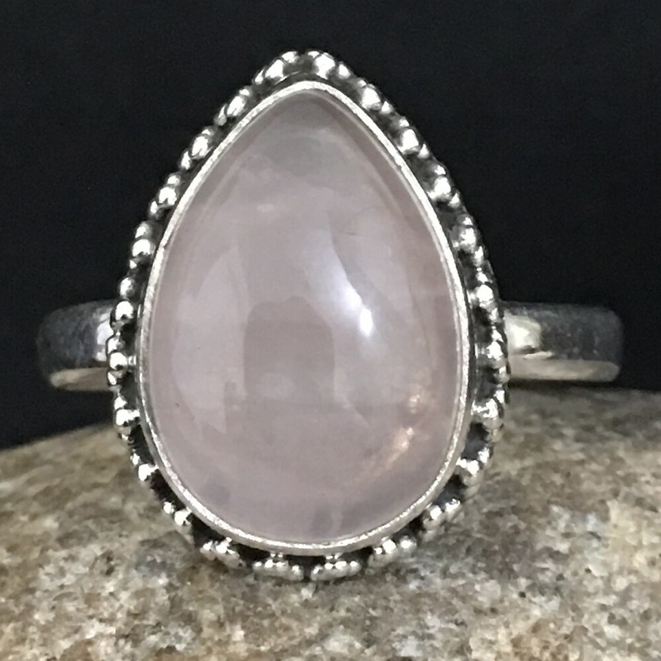 Sterling Silver Rose Quartz Gemstone Hand Crafted Promise Ring Combo Womens Gift
