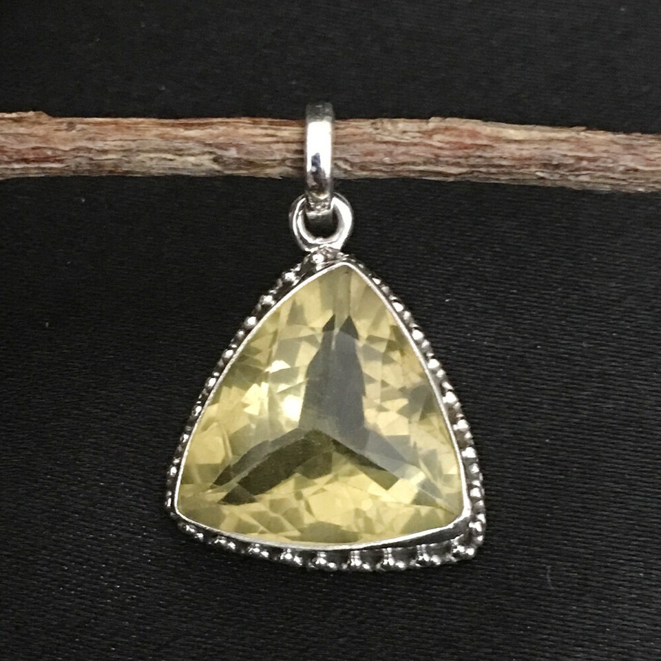 925 Silver Women Pendant Necklace Lemon Quartz Triangle Shape Handcrafted Gift
