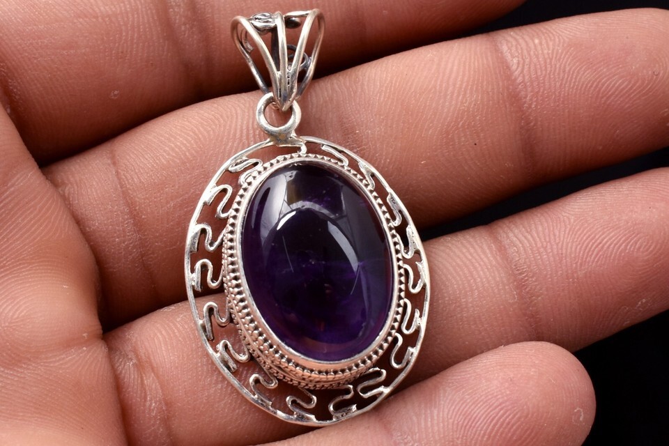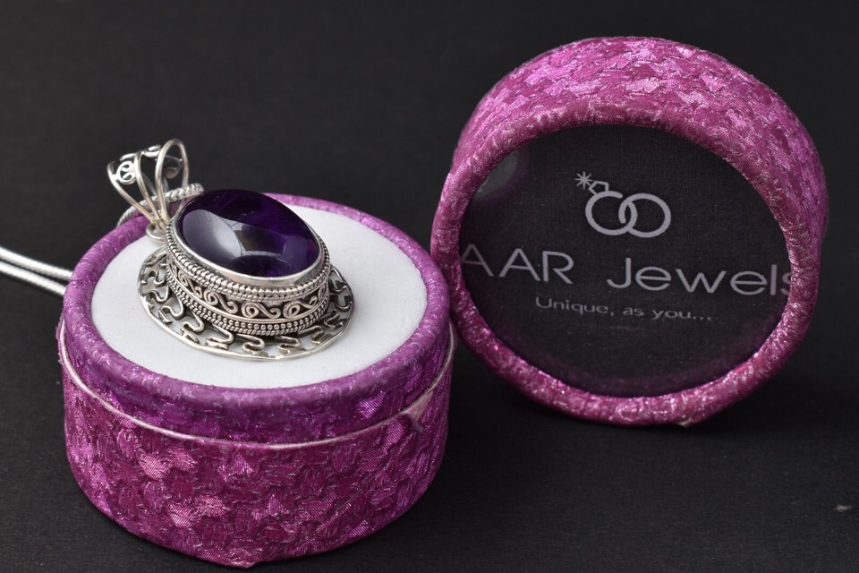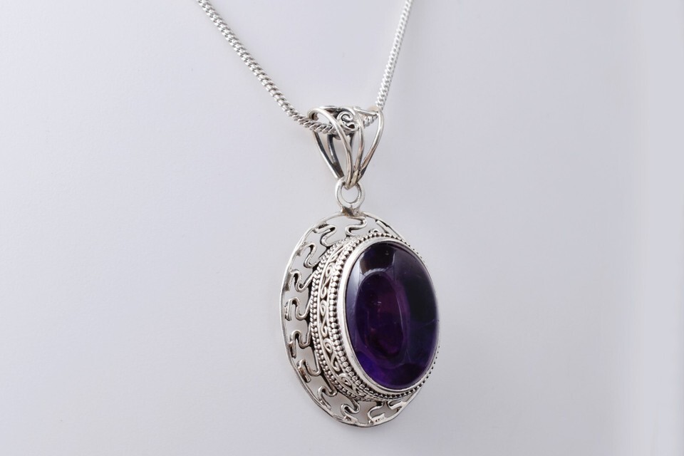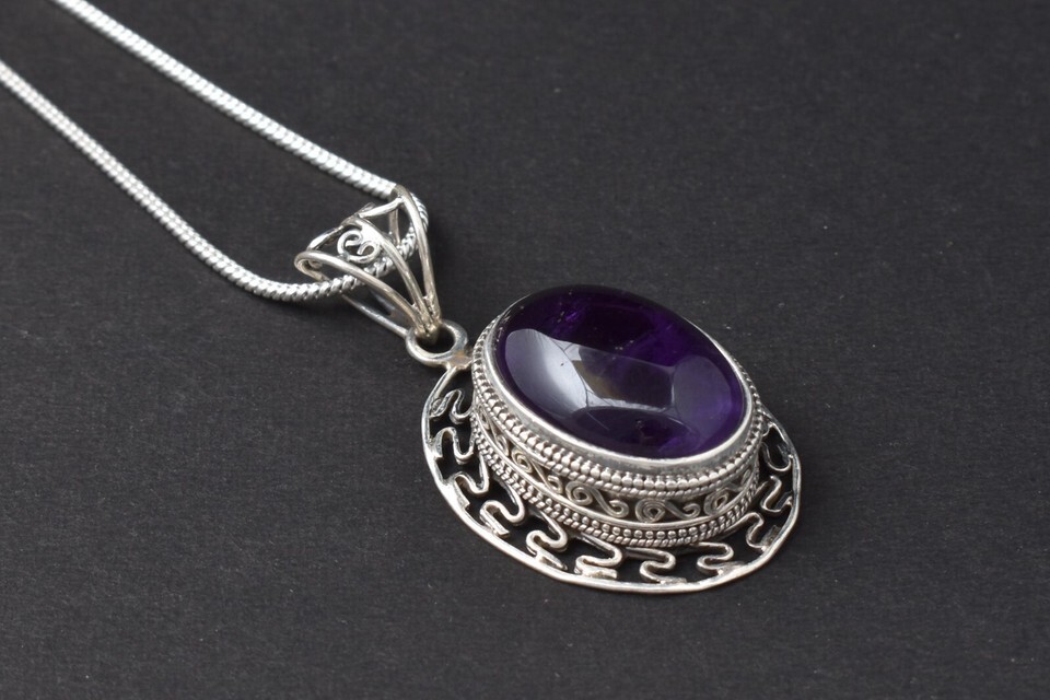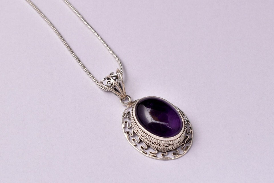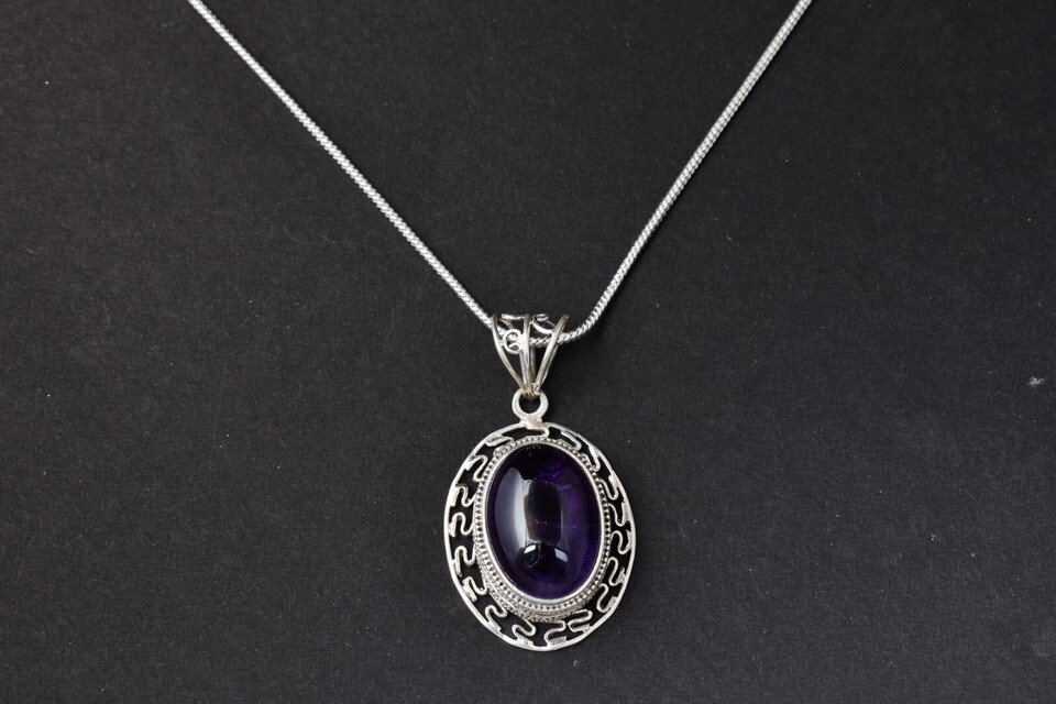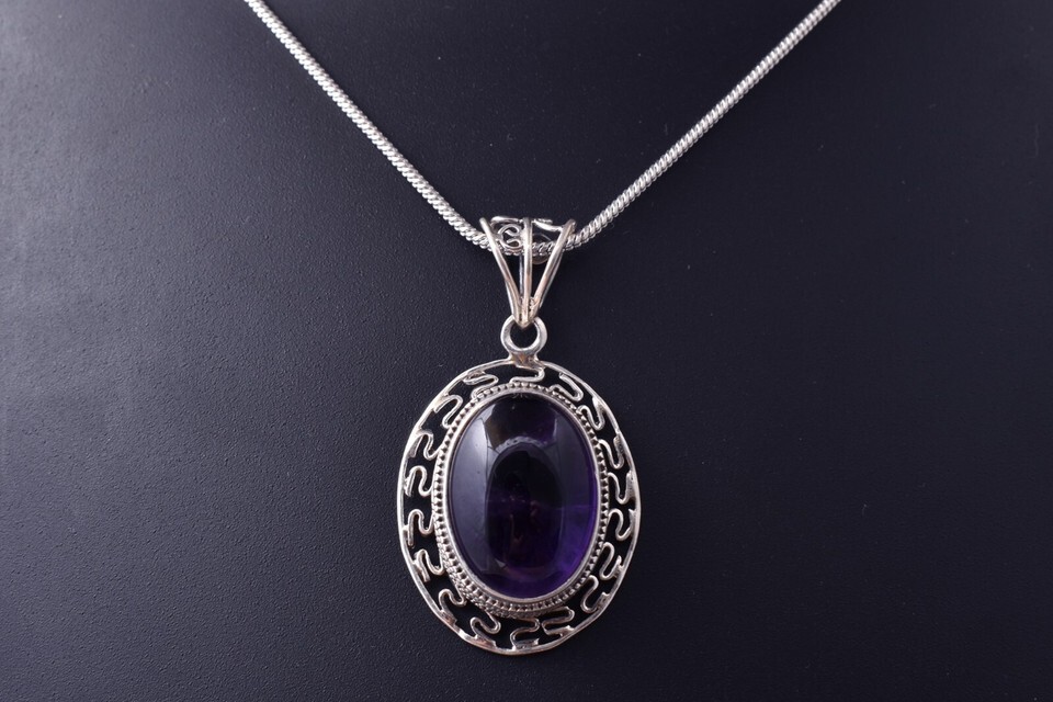 Sterling Silver Pendant Necklace Natural Amethyst Jewelry PS-1001