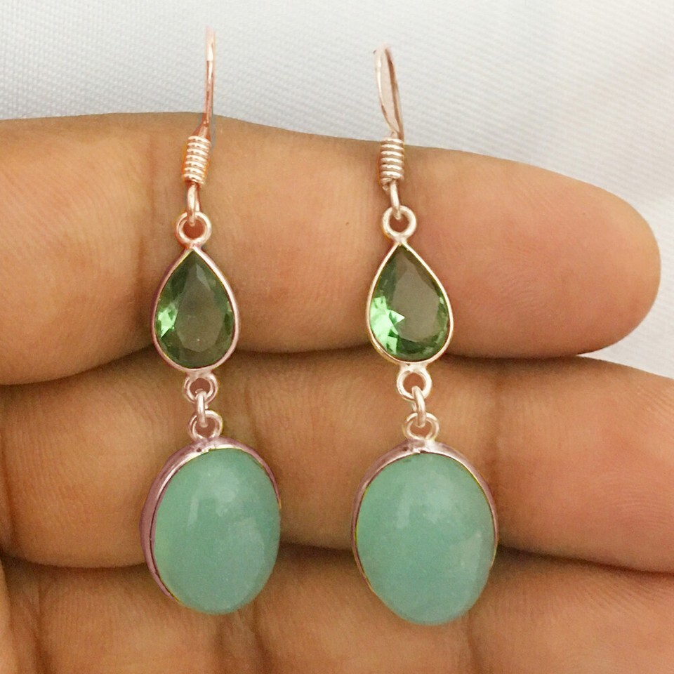 925 Sterling Silver Chalcedony & Amethyst Gold / Rose Gold Plated Earrings