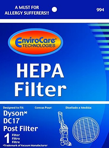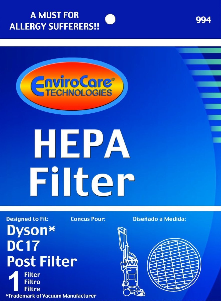 Product description: EnviroCare Replacement Premium Vacuum Cleaner HEPA Filter made to fit Dyson DC17 Uprights. This replacement Dyson DC17 Post HEPA filter goes to the side of the vacuum and fits the Dyson Absolute Animal DC17 vacuums. . Please note that this is NOT the DC17 Washable HEPA filter which goes below the dust bin. This HEPA filter is located at the lower half of the vacuum cleaner just to the side of the dust bin.