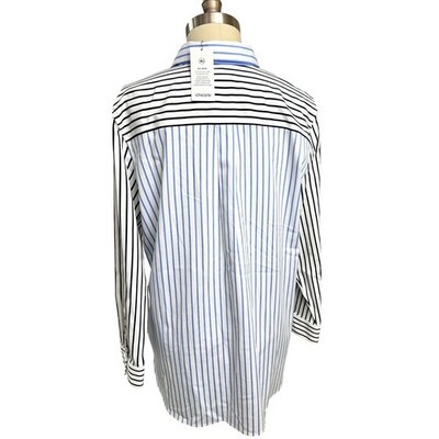 NWT Chico’s No-Iron Mixed Stripe Tunic / Shirt Chico SZ 3, Blue / Black / White