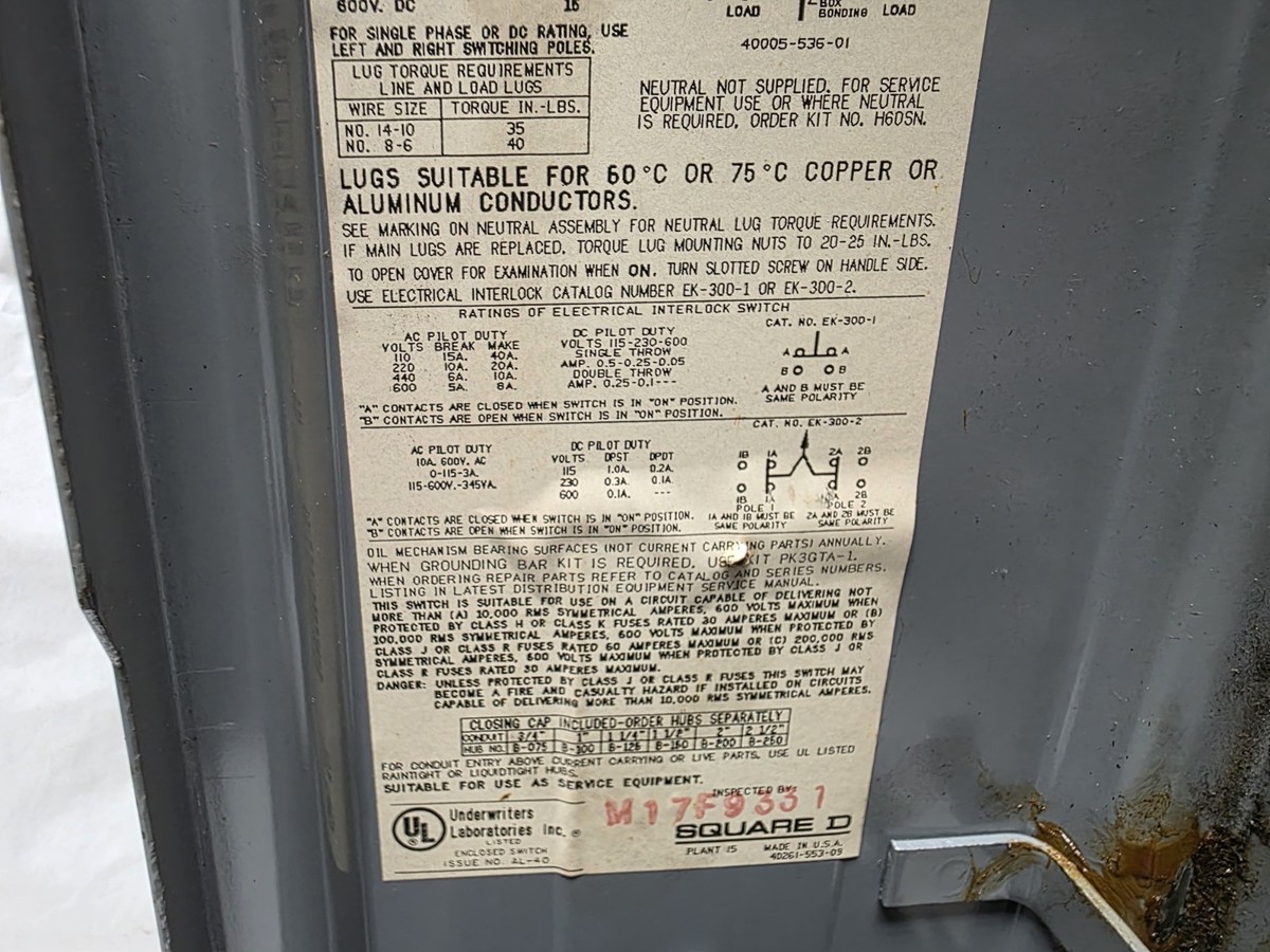 Square D HU361RB Heavy Duty, 600VAC, 600VDC, and similar items