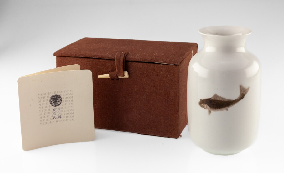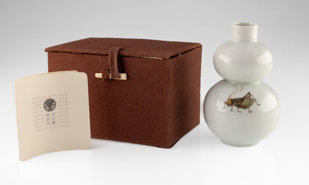 Lot of 5 Middle Kingdom Hand-Painted White Porcelain Vases Bo Jia w/ Box & CoA