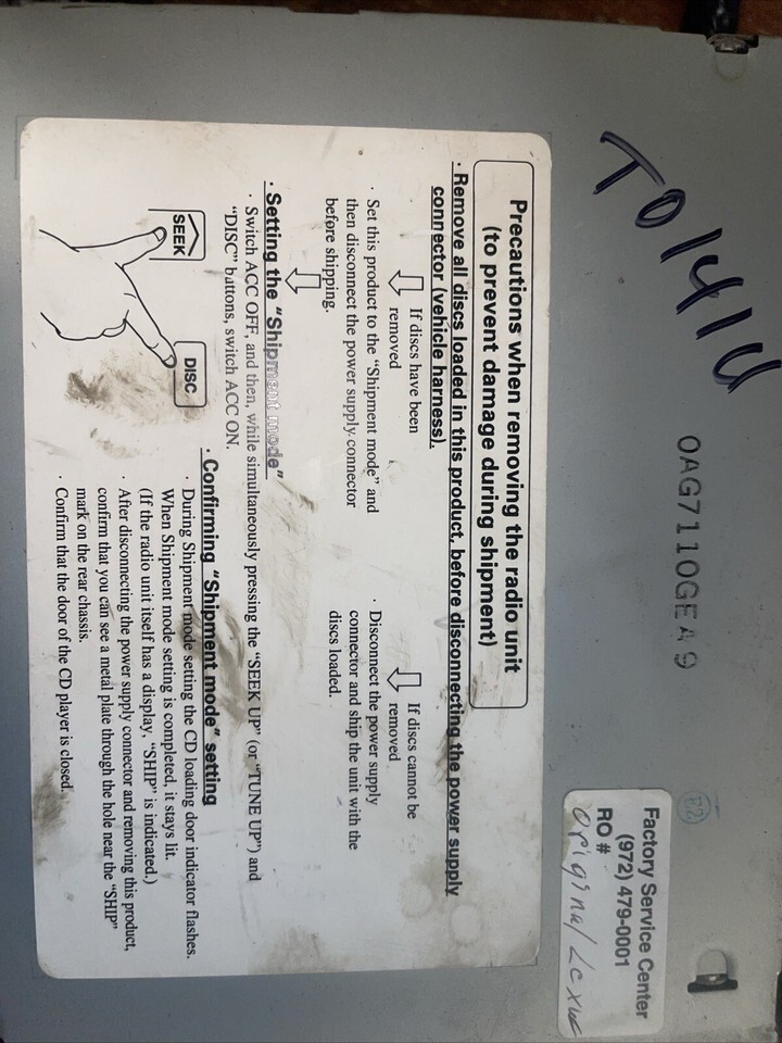 2005-2006 Lexus RX330 RX400h Radio and 6 CD Player 86120-48510 P6847 TO141U