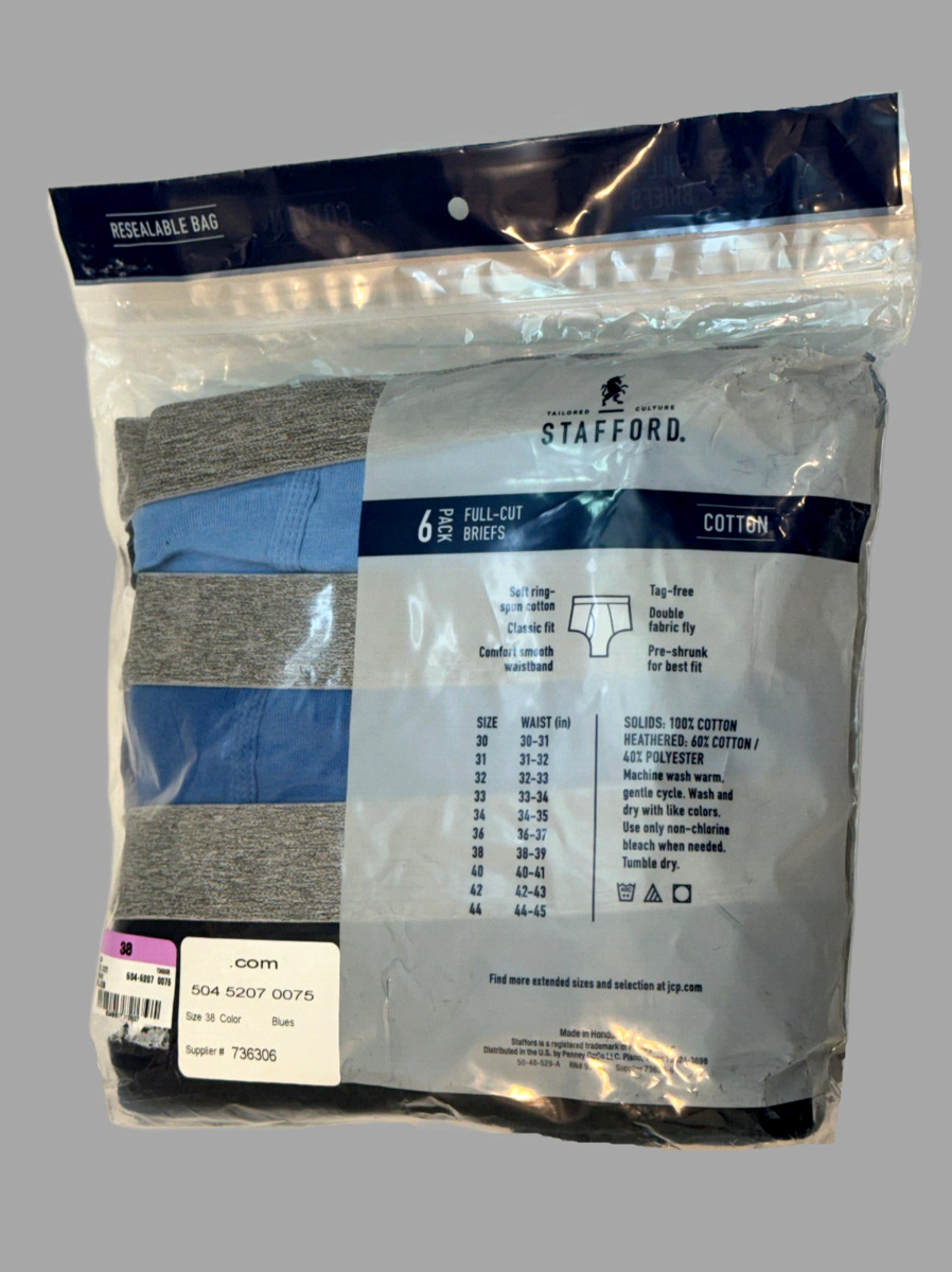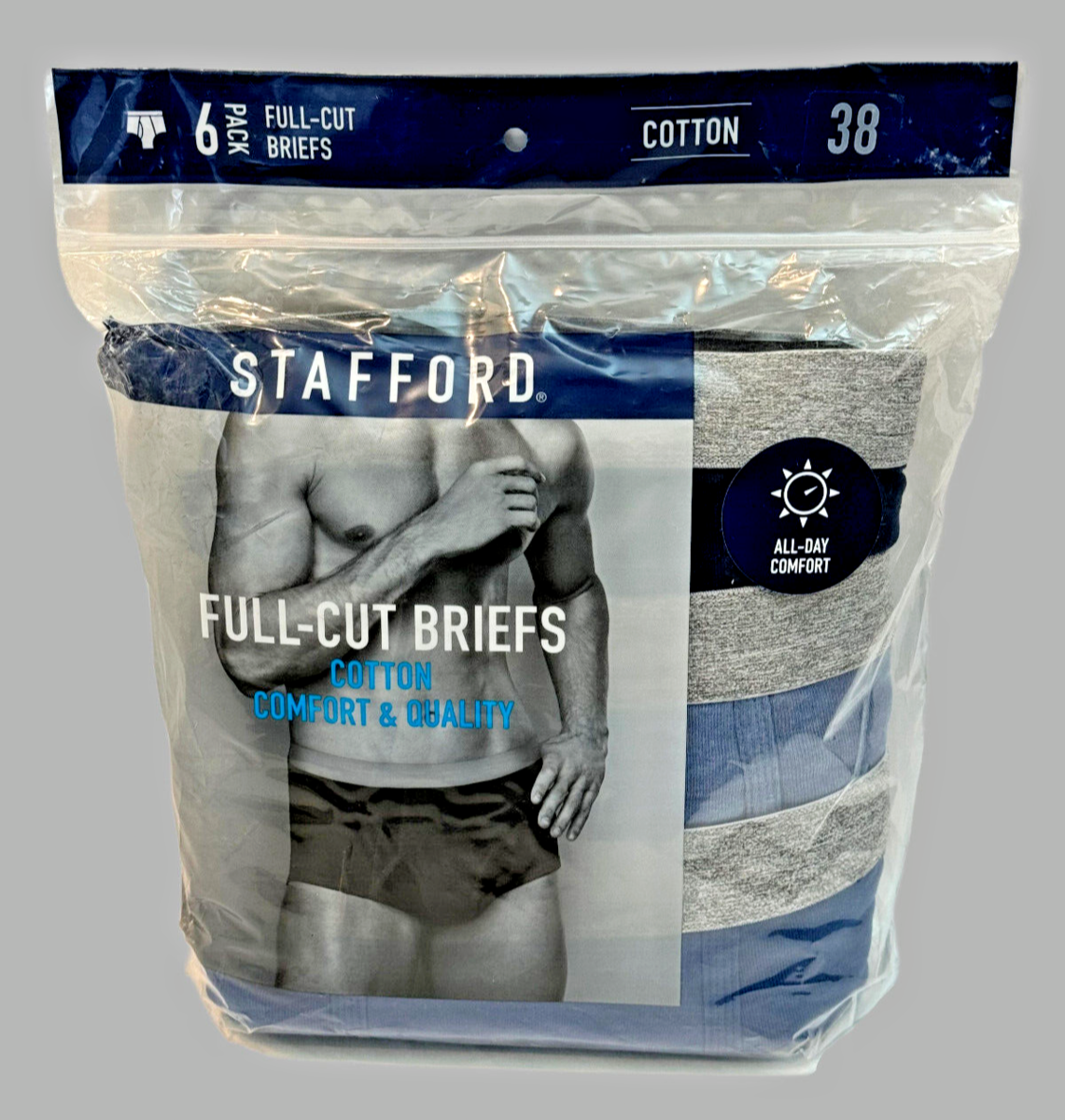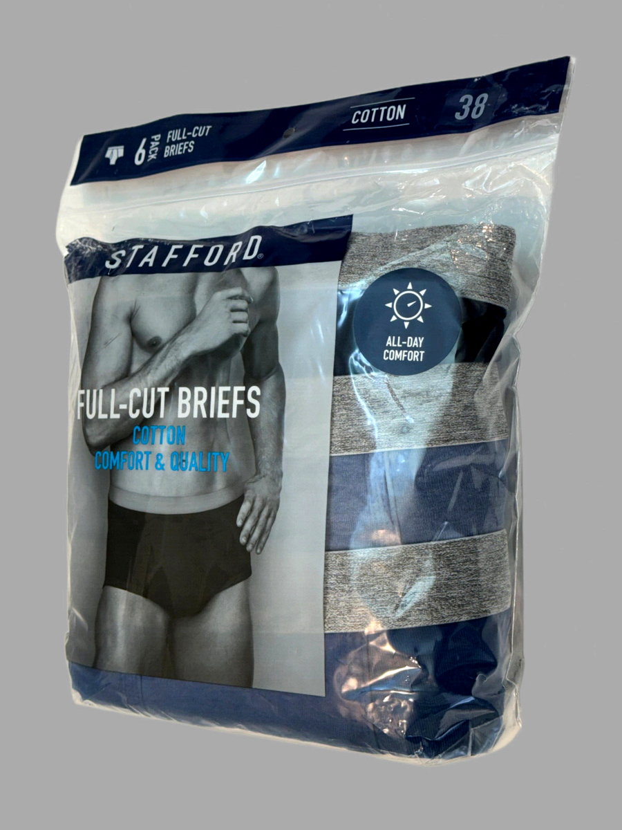 Stafford Full Cut Briefs Men 38 Blue 100% Cotton Underwear 6 Pack