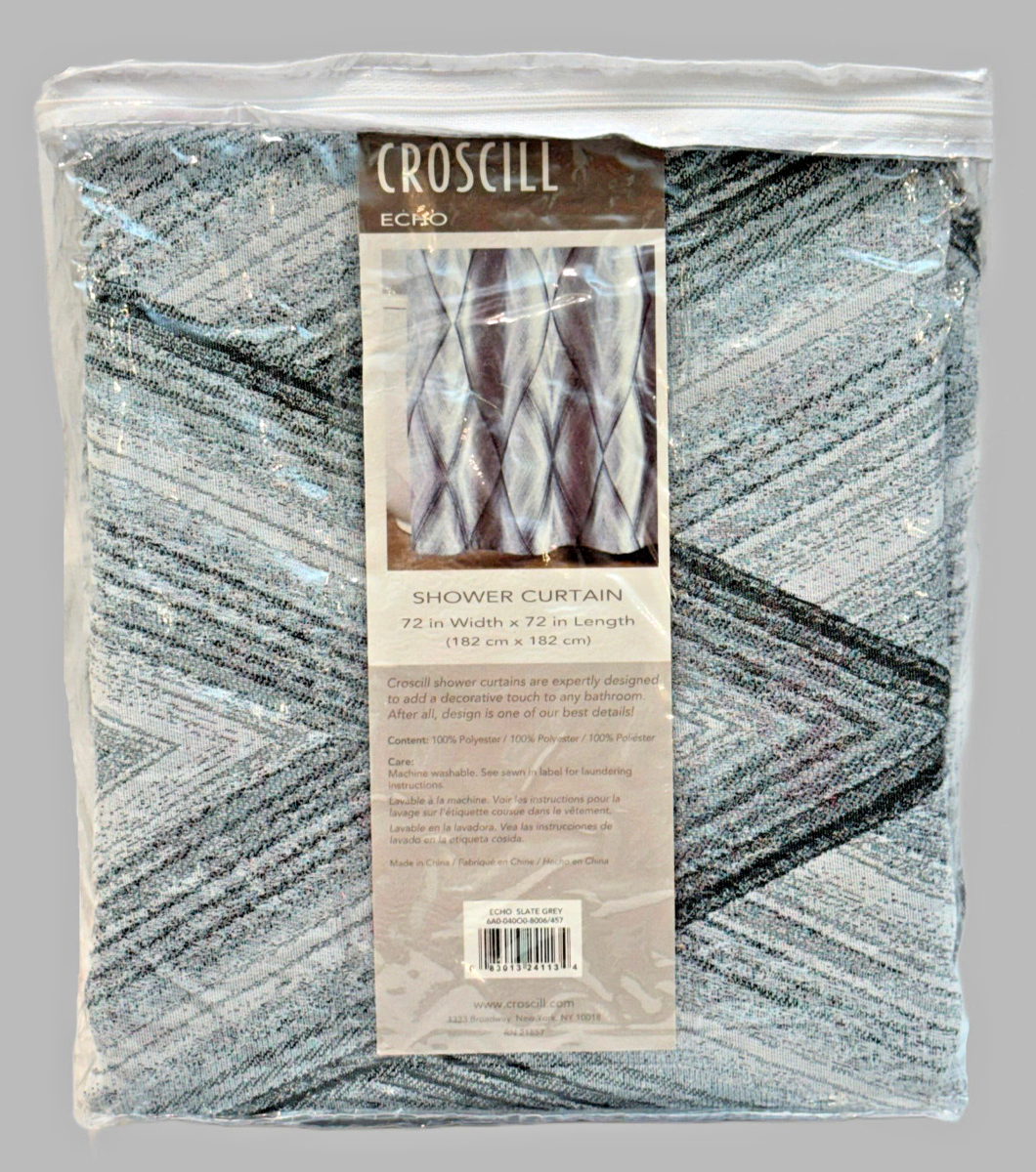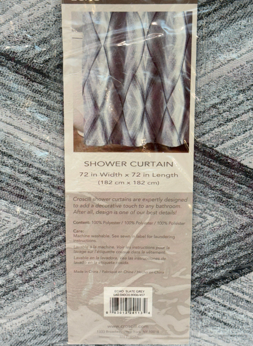 Croscill Echo Shower Curtain 72" x 72" Slate Grey Diamond Pattern Modern