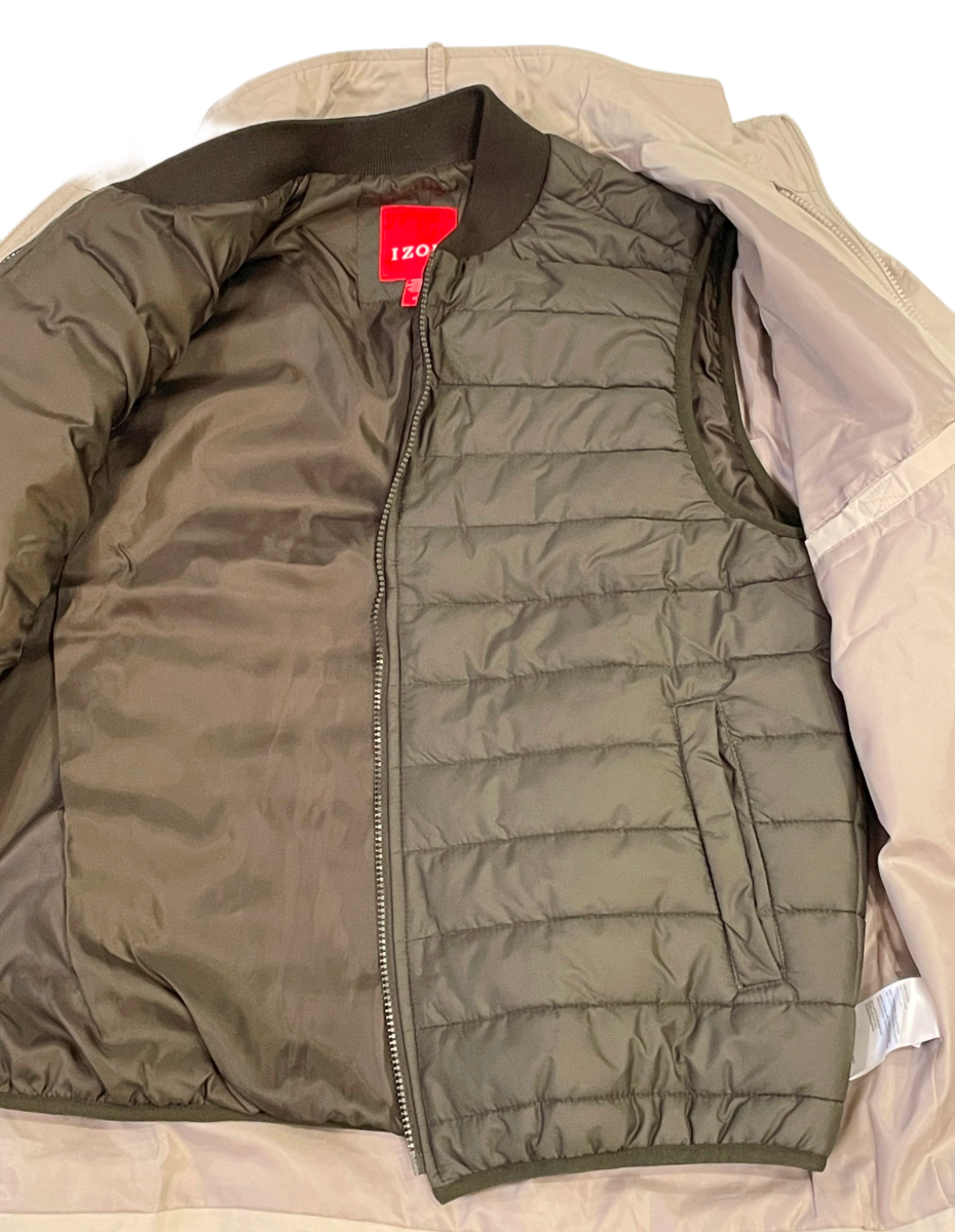 Izod 3 in 1 All Season Jacket Coat Men M Beige (Stone) Outer Shell & Inner Vest