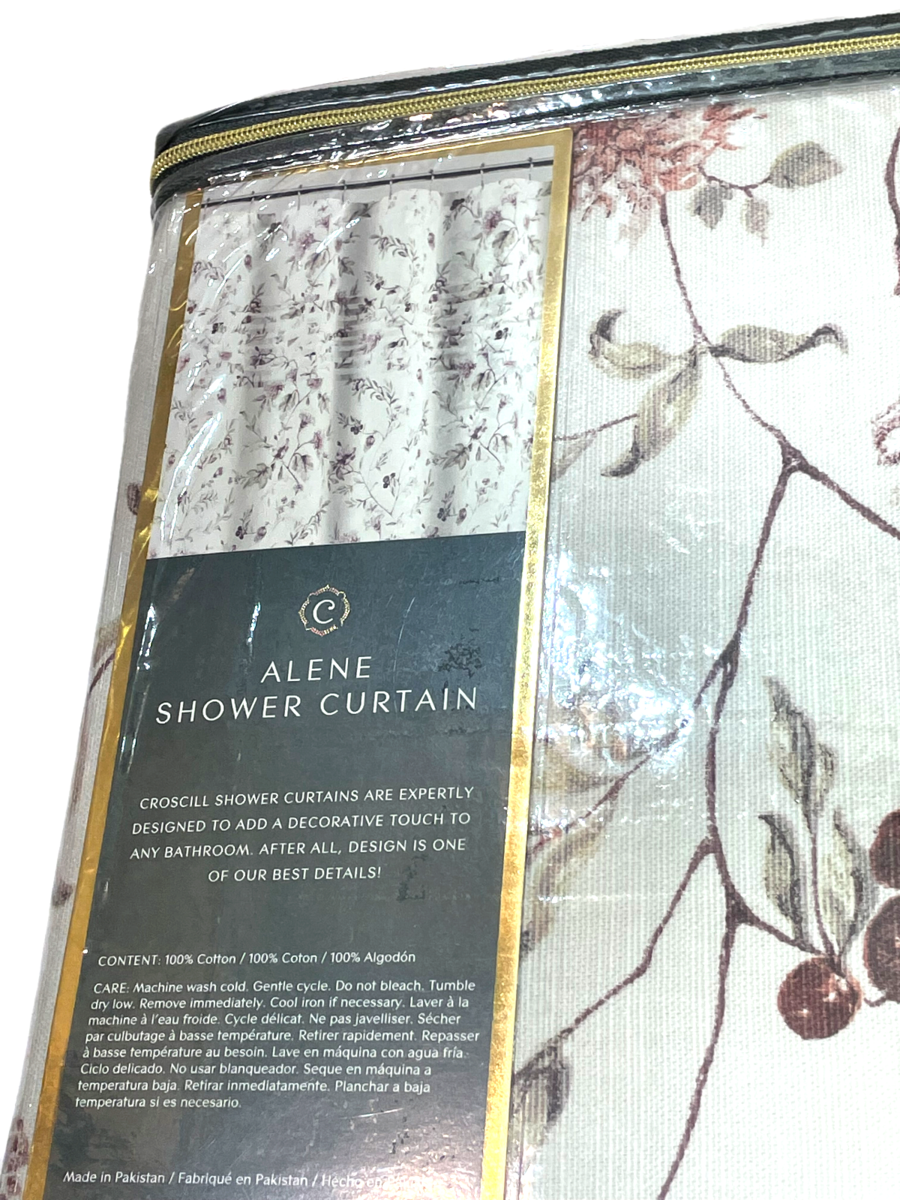 Croscill Alene Shower Curtain 72" x 72" Multi-Color Plum Floral Cotton Pleated