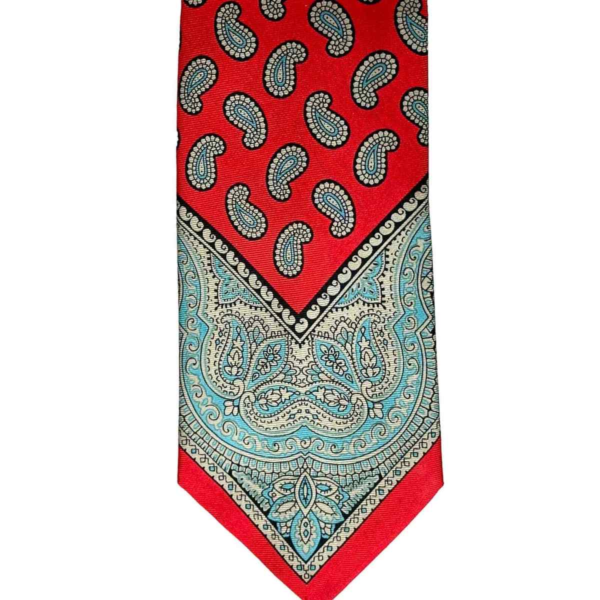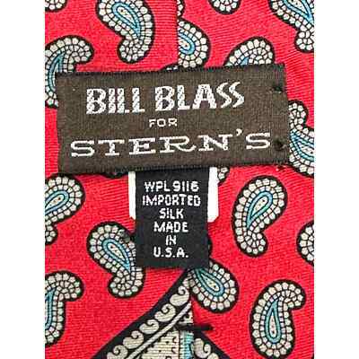 VTG Mens Necktie NOS Bill Blass for Sterns Imported Silk Red Teal/Gray Paisley