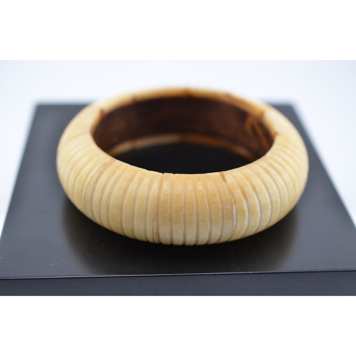 RARE Vintage Bovine Bone Carol For Eva Graham Carved Bangle Bracelet