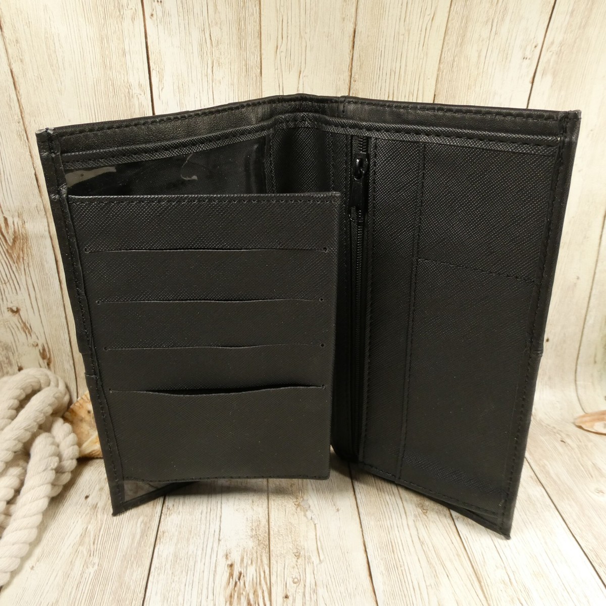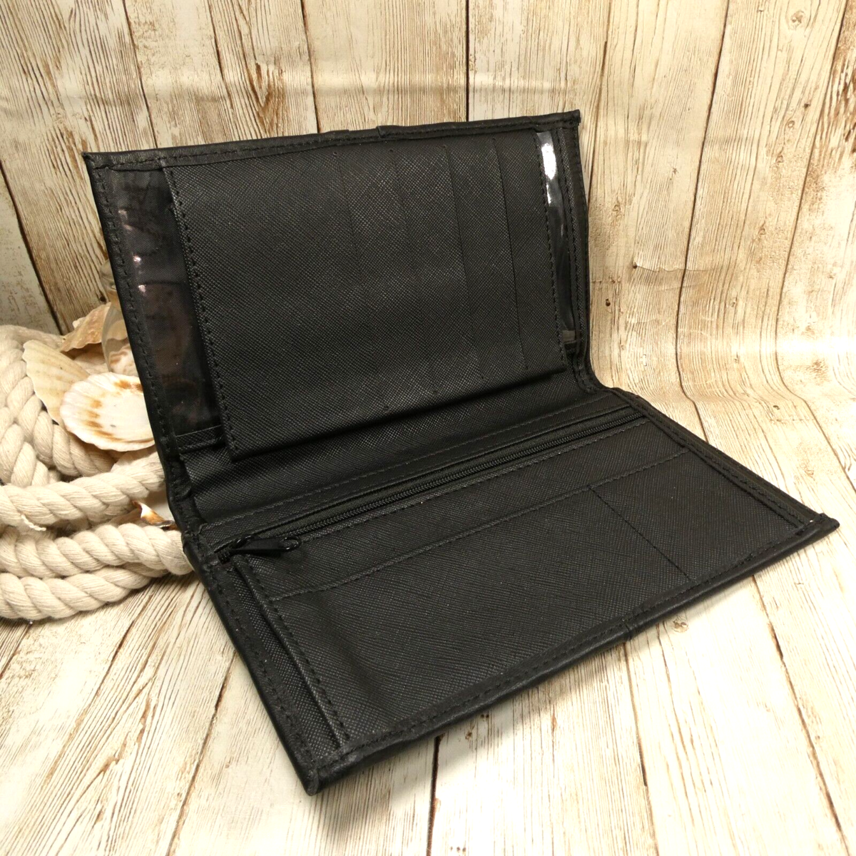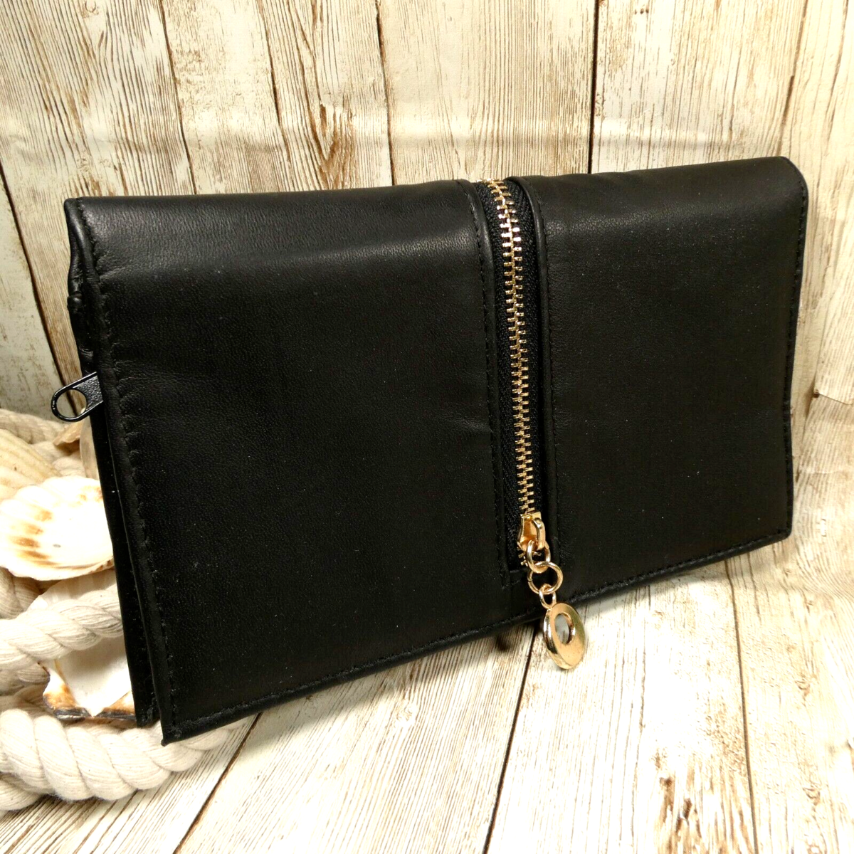Black Faux Leather Clutch RFID Blocking Front Zip Bifold Wallet EUC