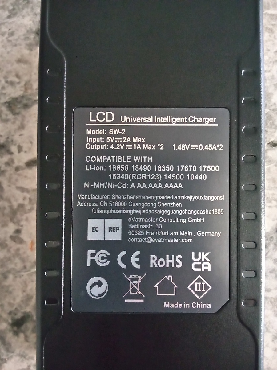 This listing is for a universal battery charger and batteries. It supports lithium ion batteries 18650, 18490, 18500, 18350, 17670, 17500, 16340 (RCR123), 14650, 14500; 1.2V Ni-MH/Ni-Cd A, AA, and AAA cells; and 3.7V li-ion models. Included are also two genuine Molicel 18650 cells and a USB C charging cable. Everything is in mint condition. The charger was hardly used and the batteries are new. Thank you for looking.