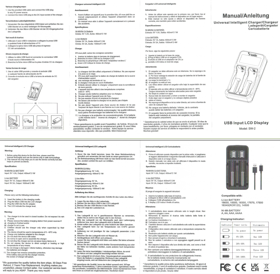 Snado LCD Universal Intelligent USB Battery Charger + 2 Batteries 18650