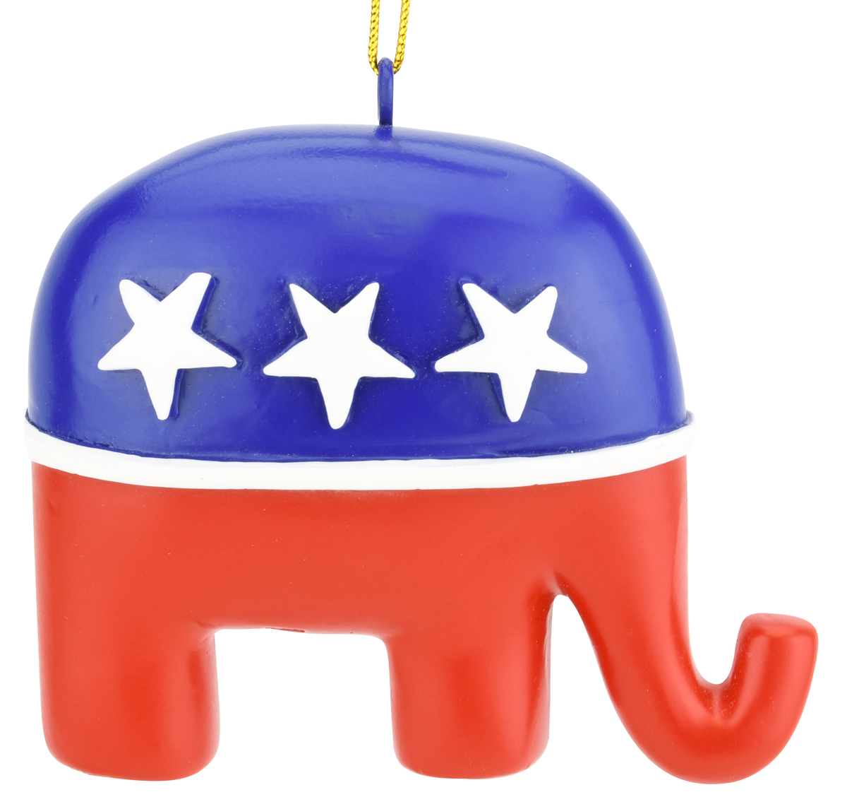 Choose between the political party symbol ornaments. The Democratic party represented by the donkey and the Republican party which is represented by the Elephant. (please see our other listings for the other party)