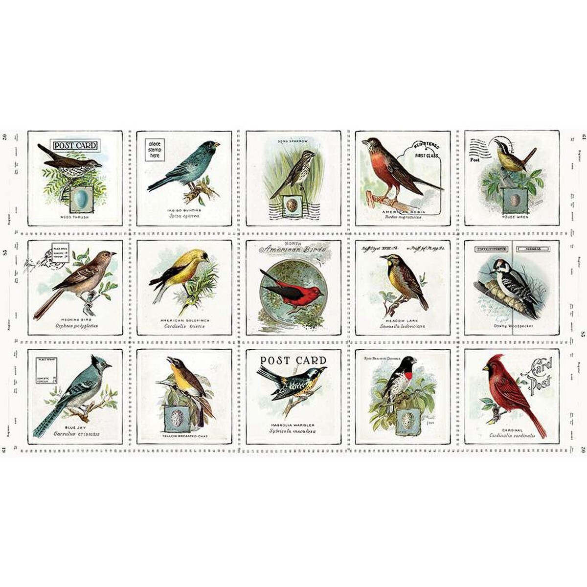 24" X 44" Panel Song Birds Patch Postcards Art Journal Cotton Fabric D652.22