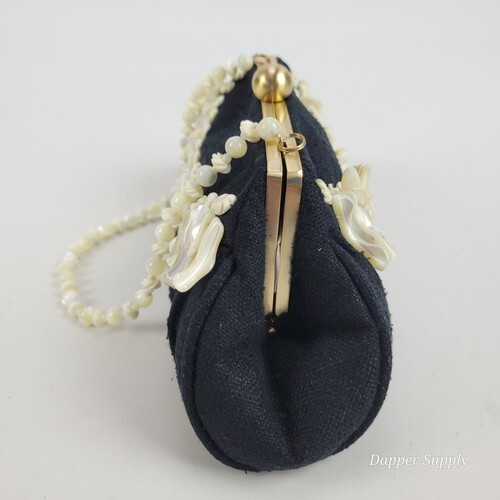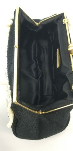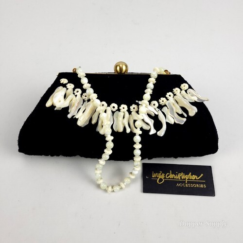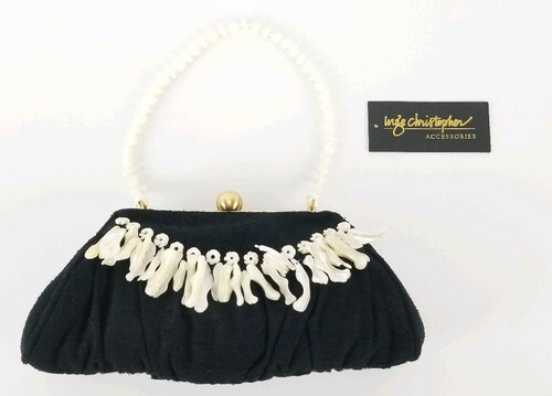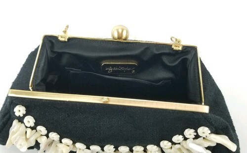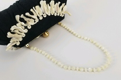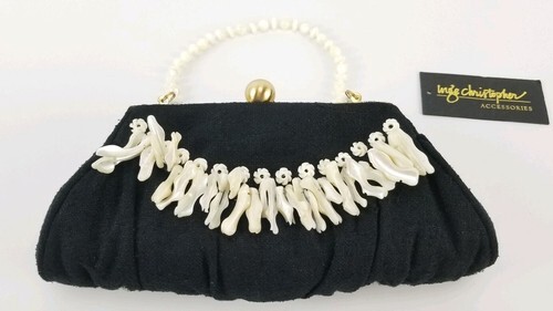 Inge Christopher Black Cloth Clutch Shells Pearls 9.5" x 4" .